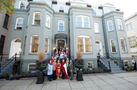 The staff of the National Congress of American Indians gather at the organization’s new headquarters, the Embassy of Tribal Nations, in the heart of the diplomatic enclave in Washington, D.C. Photo courtesy of the National Congress of American Indians.